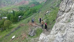 Майлуу-Суудагы жер көчкүдөн улам тургундар тоо боорундагы кыя жол менен өтүп жатат