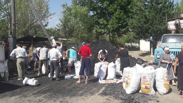 В городе Майлуу-Суу малоимущим семьям, ветеранам ВОВ, инвалидам, матерям-героиням выдали от 250 до 500 кг угля (фото)