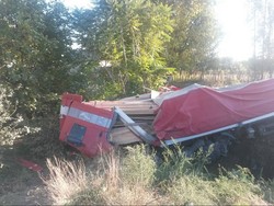 На дороге Бишкек–Ош перевернулась грузовая машина, водитель в больнице